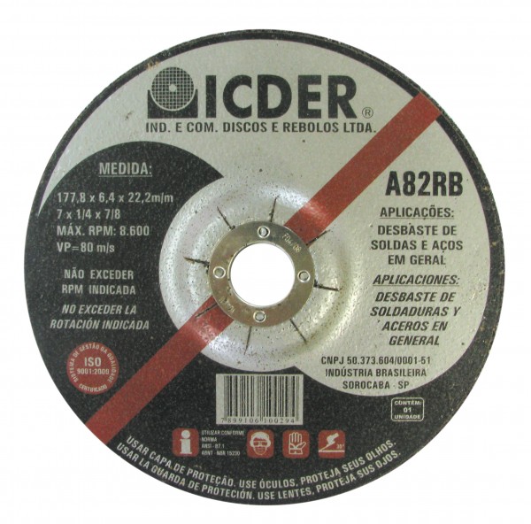 A ICDER fabrica Discos e Rebolos Especiais para aplicações específicas. Consultar nosso Departamento Técnico e/ou Departamento de Vendas para informações adicionais.